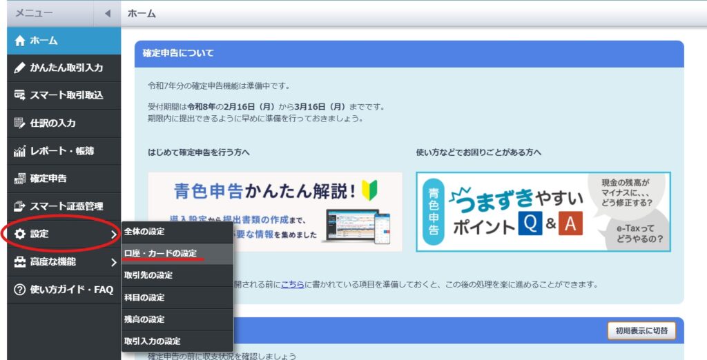 ①青色申告・消費税の設定確認